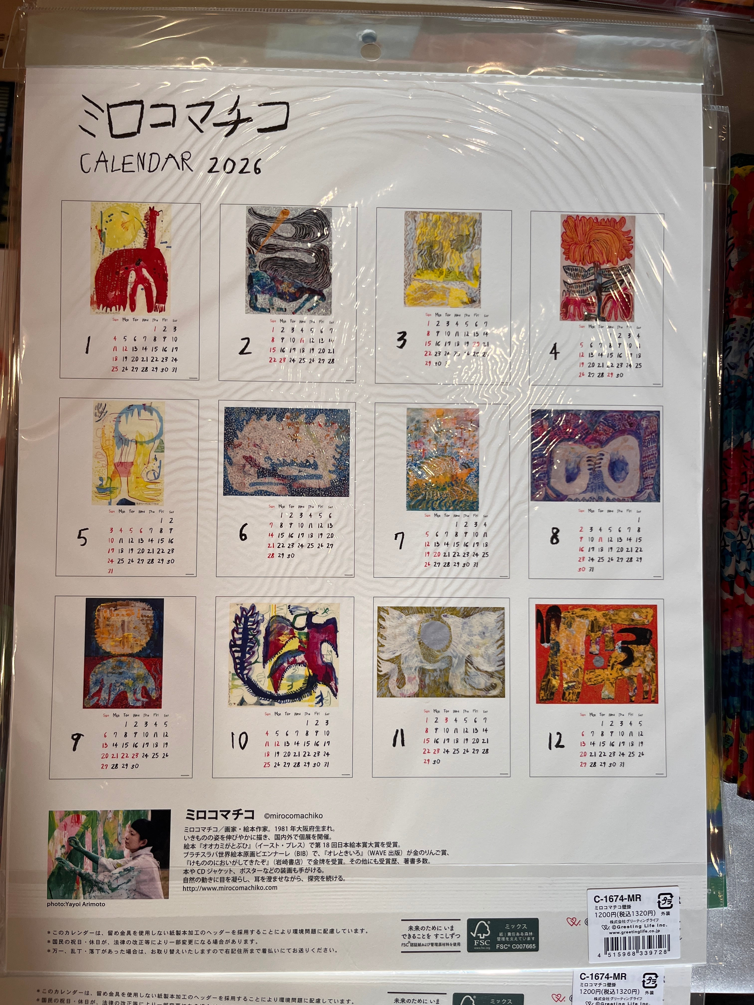 2026年壁掛けカレンダーが届きました。