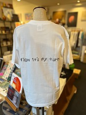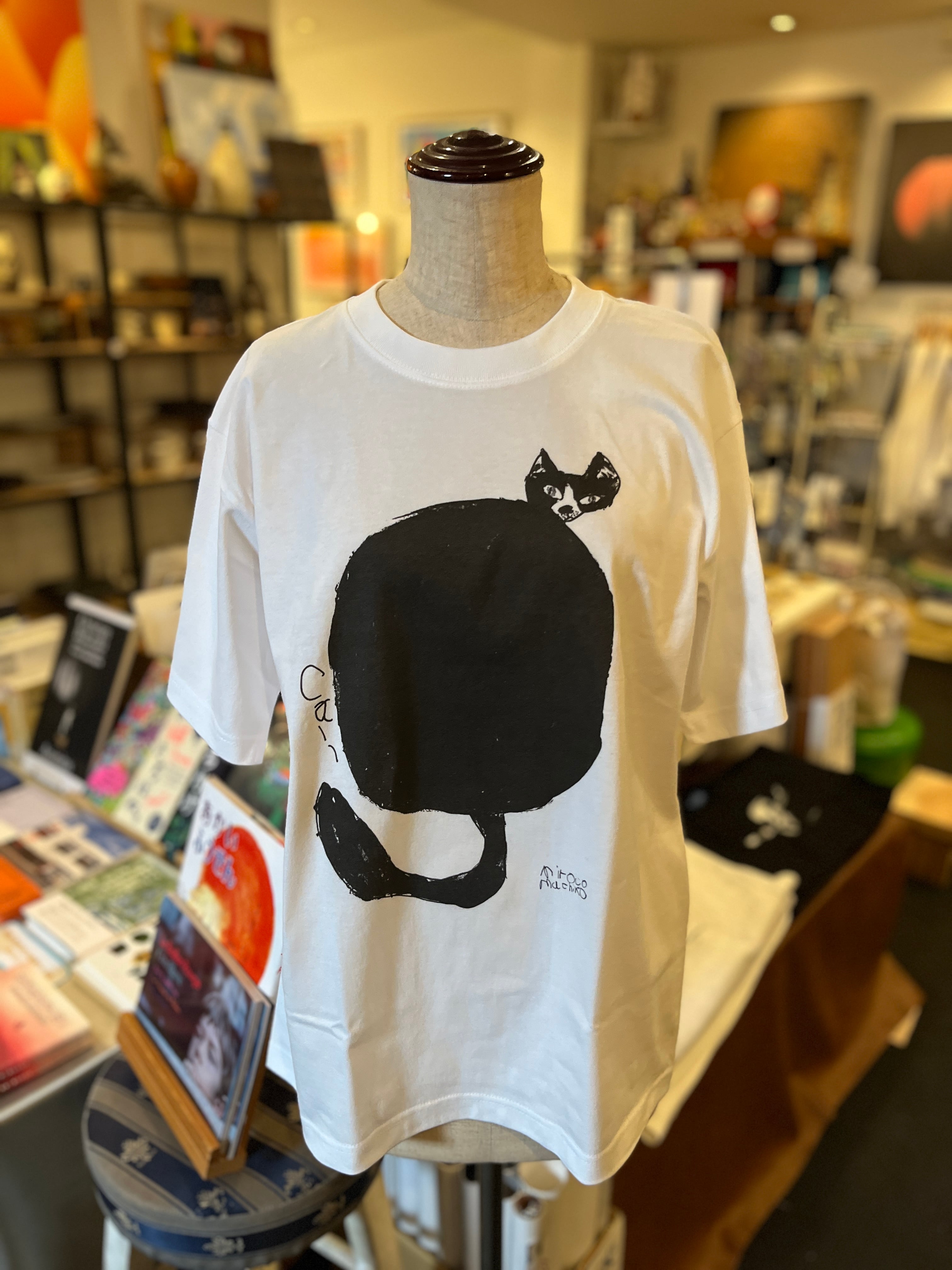 フロントには猫 tenの姿、バックには、シルクプリントしたミロコマチコの手書き文字「 now it's my turn 」のデザインがプリントされています。